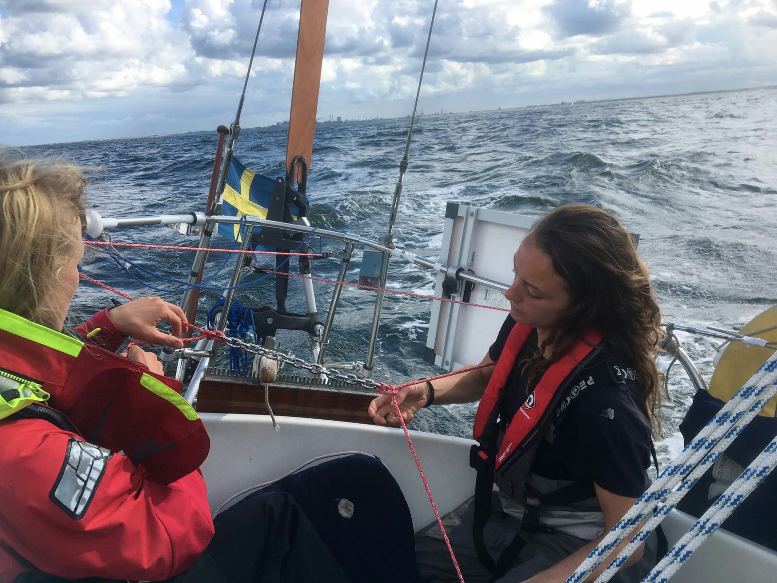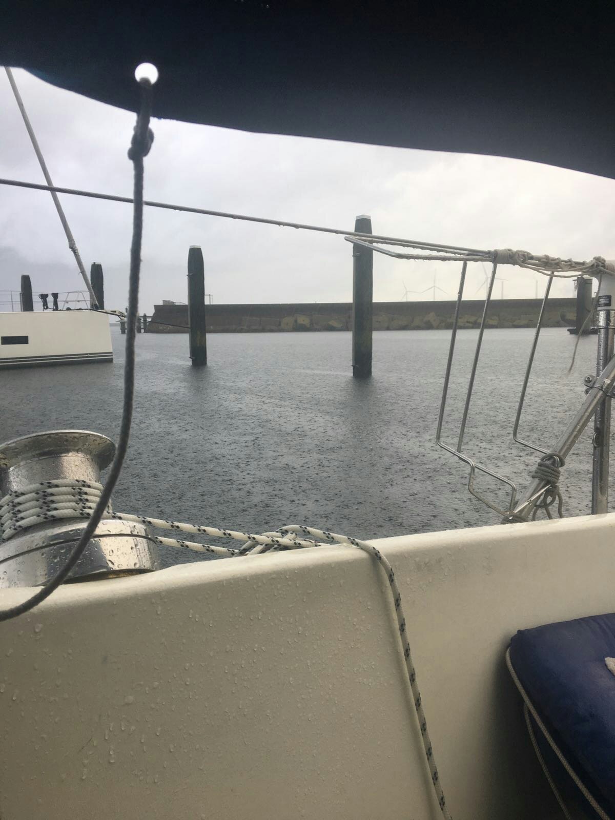 We sailed from Ijmuiden on Saturday afternoon and sailed through the beautiful night against the wind. We were taken by a short squall with lightening but fortunately we were on the edge and managed to reef in time.